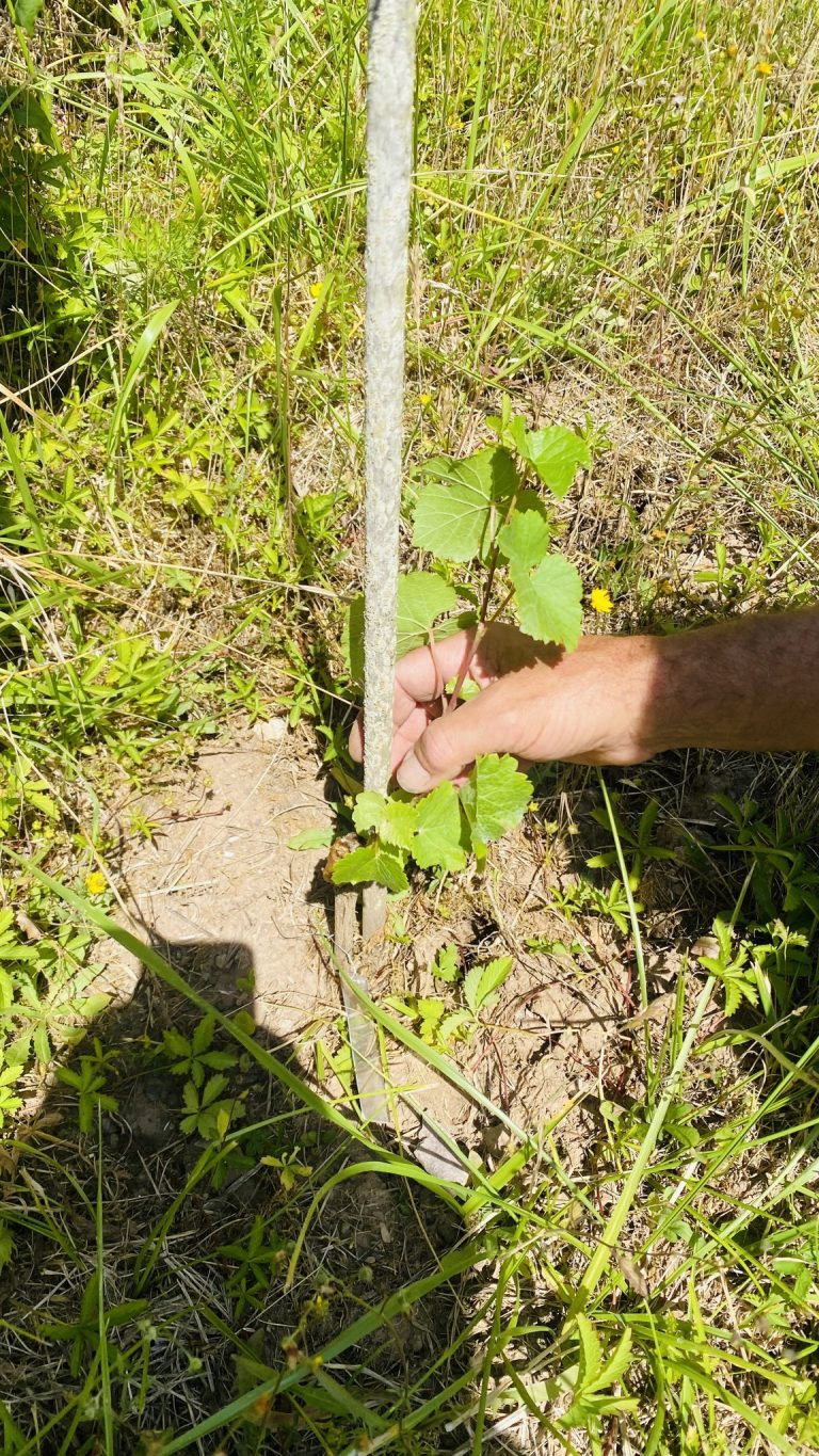 Wir hatten auch die Gelegenheit, neu gepflanzte Rebstöcke in Form zu bringen, so dass am Ende nur ein schöner und gerade wachsender Rebtrieb an den Pflanzstock angebunden wurde. Das werden wir dann nächstes Jahr auch mir unseren neu gepflanzten Rebstöcken so umsetzen.